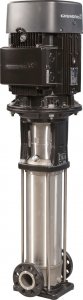 Вертикальный многоступенчатый центробежный насос с одинаковым уровнем расположения портов всасывания и нагнетания. Насосная часть и плита-основание сделаны из чугуна, остальные проточные части — из нержавеющей стали (EN 1.4301)