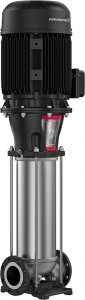 Vertical, multistage centrifugal pump with suction and discharge ports on the same level. Pump materials in contact with the liquid are in high-grade stainless steel (EN 1.4401)