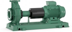 - Одноступенчатый низконапорный центробежный насос в качестве насоса на опорной раме с осевыми всасывающими патрубками с прифланцованными опорами подшипника и осевым креплением для привода, подсоединенного упругой муфтой