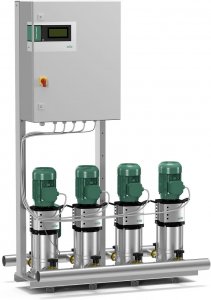 - Насосы: от 2 до 6 параллельно подключенных насосов серий от Helix V 4 до Helix V 52. Все контактирующие с перекачиваемой жидкостью детали выполнены из нержавеющей стали. Другие исполнения — по запросу. Допуск KTW/WRAS/ACS для всех деталей, контактирующих с перекачиваемой жидкостью