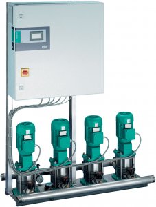 • Насосы: применяются от 2 до 6 параллельно подключенных насосов серий от MVI 2 до MVI 95; все компоненты этих насосов, контактирующие с перекачиваемой жидкостью, из нержавеющей стали и/или серого чугуна (с катафорезным покрытием)