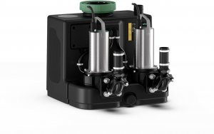 Ready for connection and fully submersible double-pump lifting unit with macerator hydraulics for pumping sewage containing faeces.