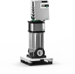 Высокоэффективный нормальновсасывающий высоконапорный центробежный насос, полностью из нержавеющей стали, с электронно-коммутируемым двигателем класса энергоэффективности IE5 согласно IEC 60034-30-2, в вертикальном исполнении с интегрированным High Efficiency Drive и линейными подсоединениями.