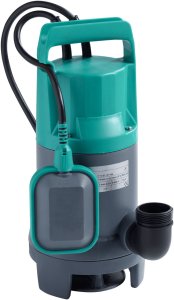 Sewage pump with vortex impeller and vertical threaded connection. Pump housing and impeller made of composite material. 1~ motor with integrated operating capacitor, self-switching thermal motor monitoring, and basic sealing with a rotary shaft seal. Motor housing made of steel. Connection cable with float switch and fitted plug (CEE 7/7).