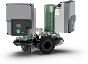 Линейный насос с сухим ротором с электронно-коммутируемым двигателем и электронной регулировкой мощности. Исполнение в качестве одноступенчатого низконапорного центробежного консольного насоса с фланцевым соединением и торцевым уплотнением.